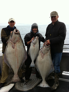 At 3pm we pulled anchor and ran 20 min to a spot that was sure to hold some fish. Within an hour we landed 47 halibut. It was chaos on the deck but everyone was having a great time. The deckhands really worked for their money running around the boat enough times to equal the distance of a marathon. All in all a great day with great weather. The rain never showed and the sea state was flat calm with no wind. Can’t complain … this has been a great spring.