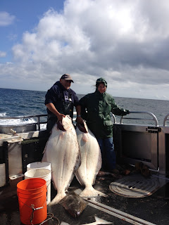 We went to the same area as yesterday in persuit of some more big halibut. They were biting good there yesterday but today was a different story. Although our first fish of the day was 80lbs the bite never seemed to pick up for us. We ended up with 9 at our first spot and 1 80 pounder at the next fishing spot. We gave it a good shot but the fish didn’t want to bite for us leaving no choice but to pull anchor and try our jigging rods. We drifted the same general area picking up 9 big lings in the process. We later moved out to the honey hole and filled the boat up quickly. Blue skies and no wind made up for the slow fishing. Looks like tomorrow will be a good one too. Thanks guys. FISH ON!!!